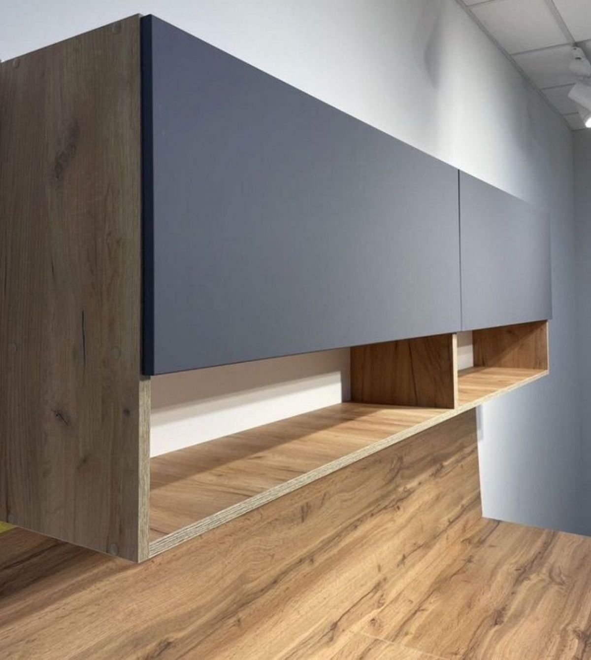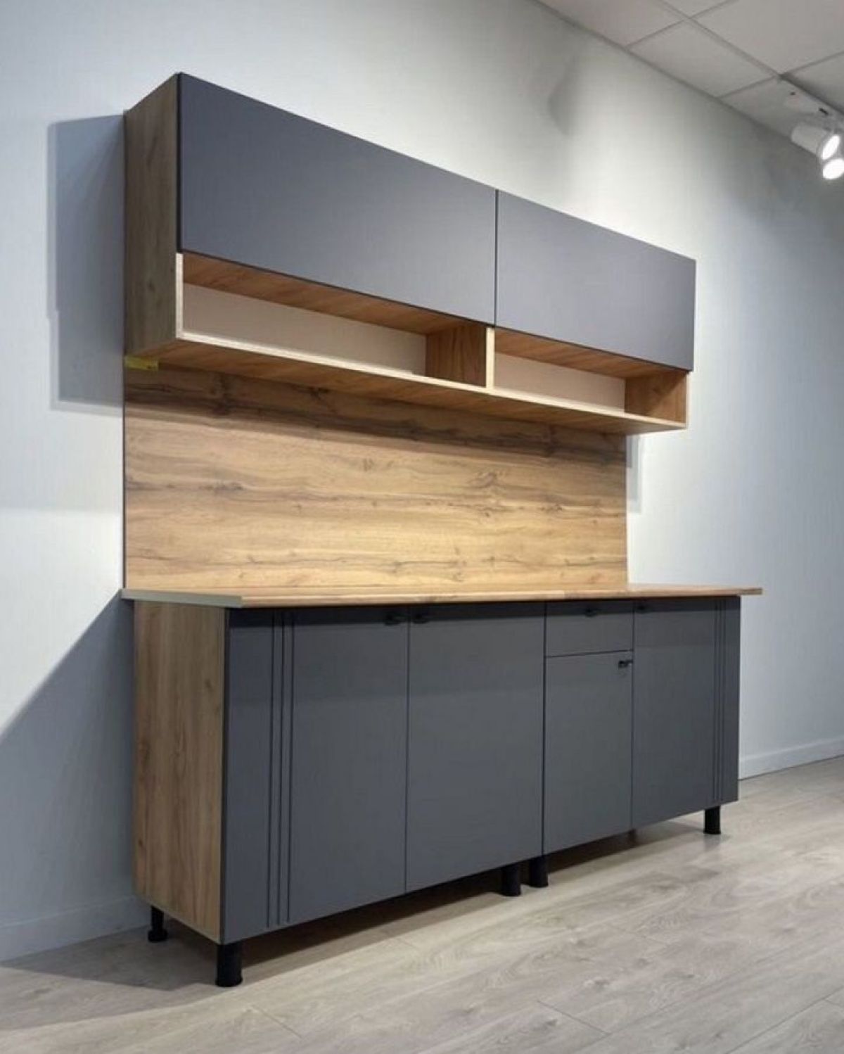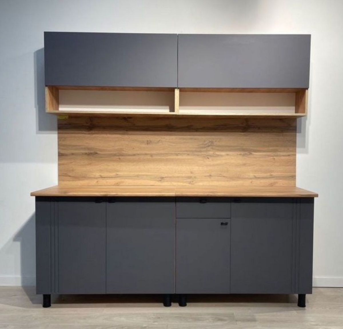 Фасады верхних модулей не имеют ручек, открытие за нижний край фасада.